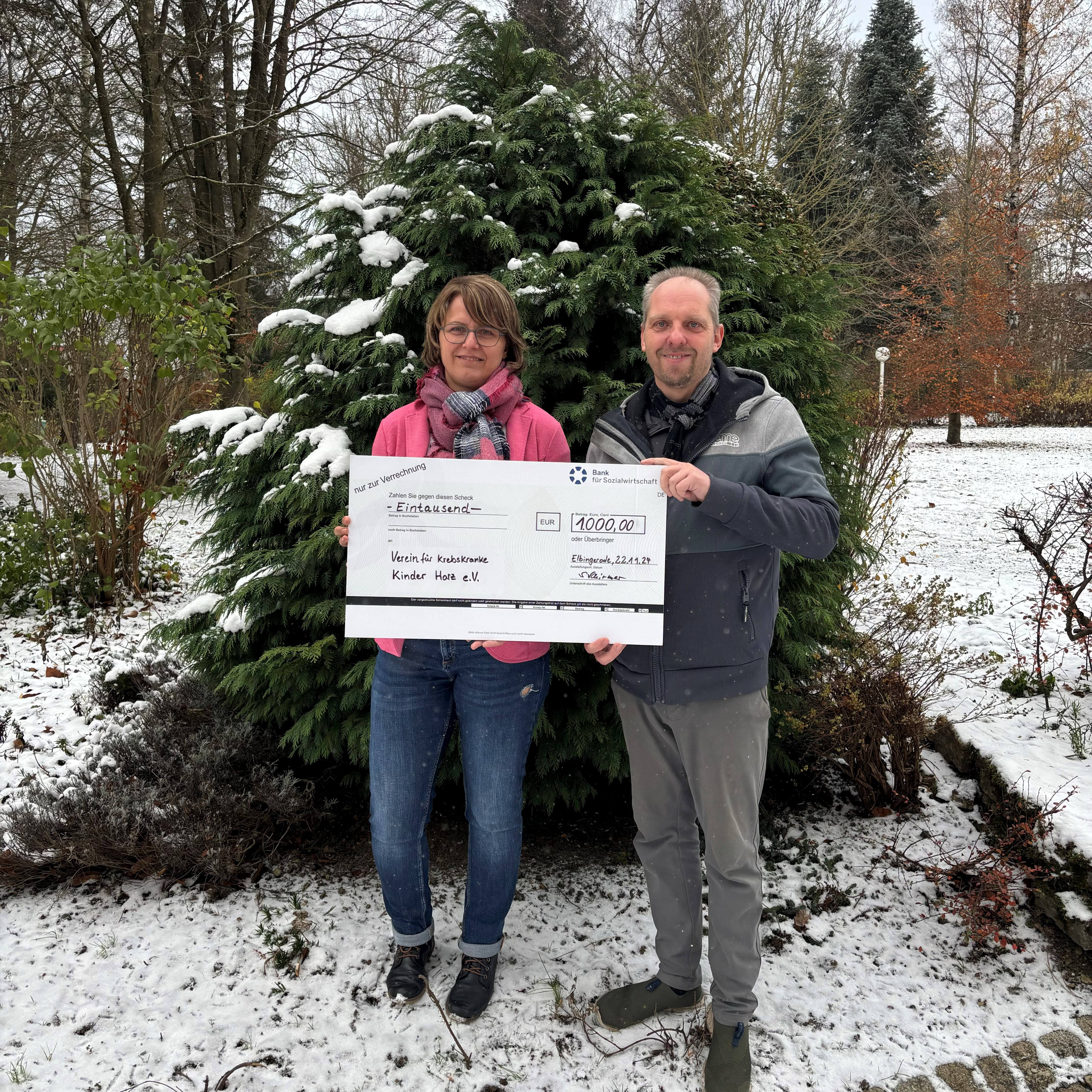 Zur festlichen Weihnachtszeit wurde eine bedeutende Spende in Höhe von 1000,00 € an den Verein für krebskranke Kinder Harz e.V. überreicht. Die Übergabe fand am Standort der DGD-Service GmbH in Elbingerode statt und war von einer positiven und hoffnungsvollen Atmosphäre geprägt, in der die Anwesenden die Gelegenheit hatten, sich über die Arbeit des Vereins zu informieren und sich auszutauschen.